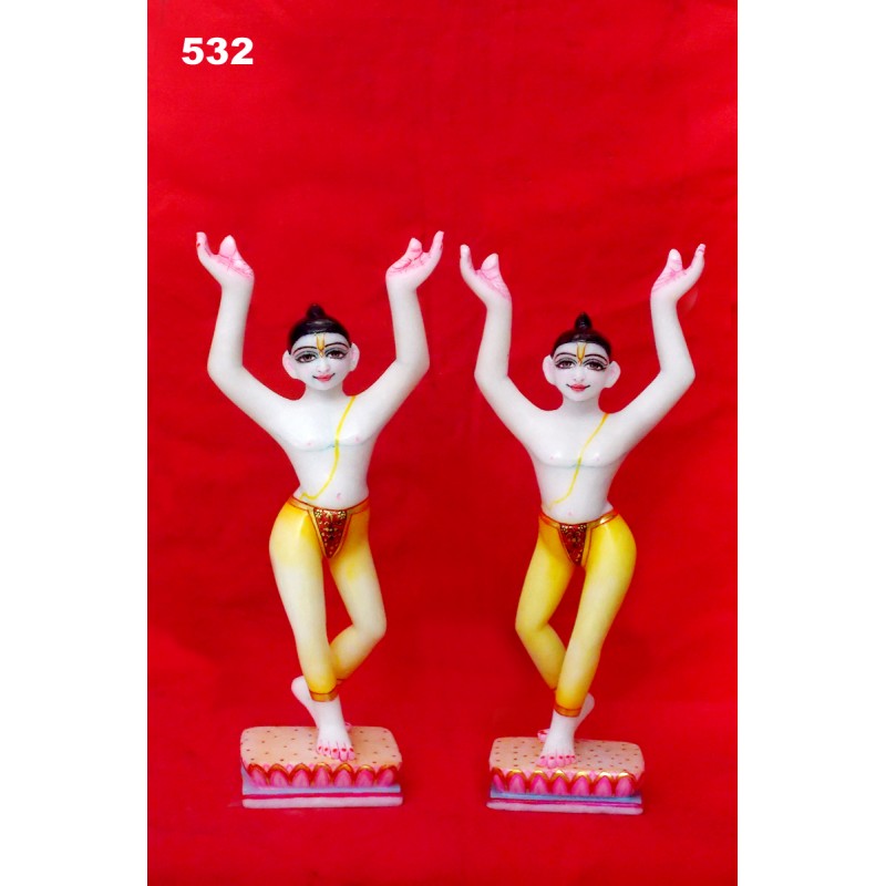 Here are some beautiful deities of Nitai Gour Sundar. Made of marble. Delicately carved and nicely painted. Very nice for your home or temple.
